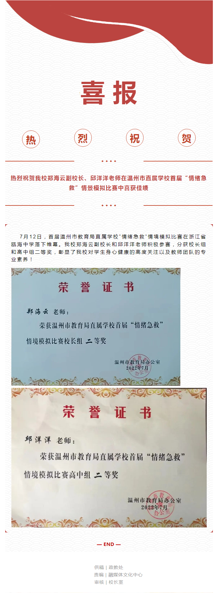 捷报频传丨我校在温州市直属学校首届“情绪急救”情景模拟比赛中喜获佳绩!