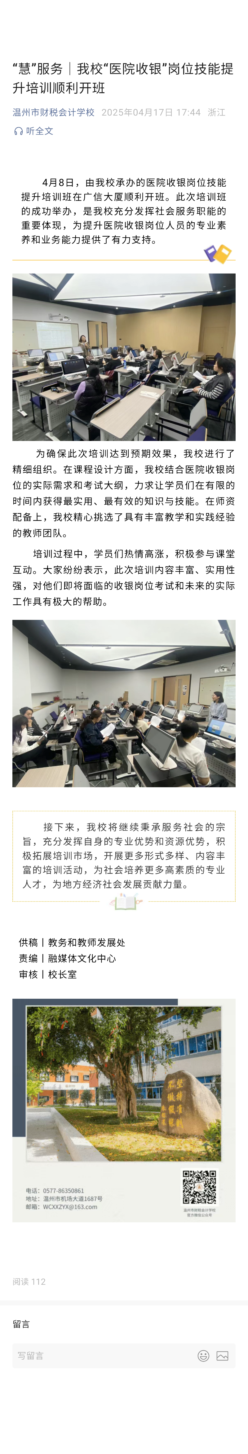 “慧”服务│我校“医院收银”岗位技能提升培训顺利开班