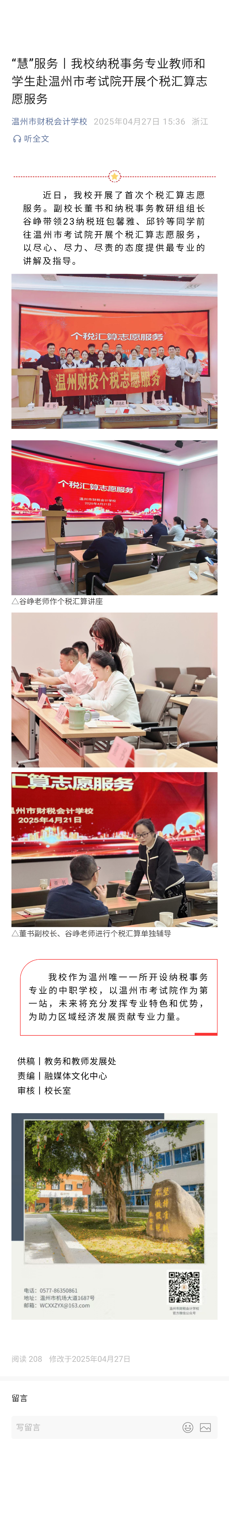 “慧”服务│我校纳税事务专业教师和学生赴温州市考试院开展个税汇算志愿服务